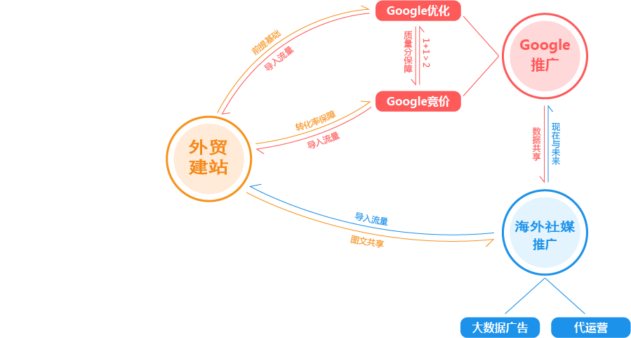 石家庄外贸推广公司为您提供全面的“整合”方案,为您的企业提供全生命周期的精细化服务和咨询。为此,我们搭建了从广告投放到SEO优化,从内容运营到网站开发,从品牌策划到电商运营的近100人的团队,组成了一家集全球渠道资源、人才资源、技术资源为一体的数字营销机构,为您一站式解决出海难题,实现品牌全球推广!